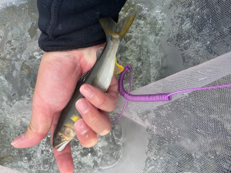 そのまま入れが掛かりを堪能できるかと思っておりましたが台風でも来てるかのような爆風。オトリも凧揚げ状態になり、本流に誰も立ちこんでいない理由を理解しました。