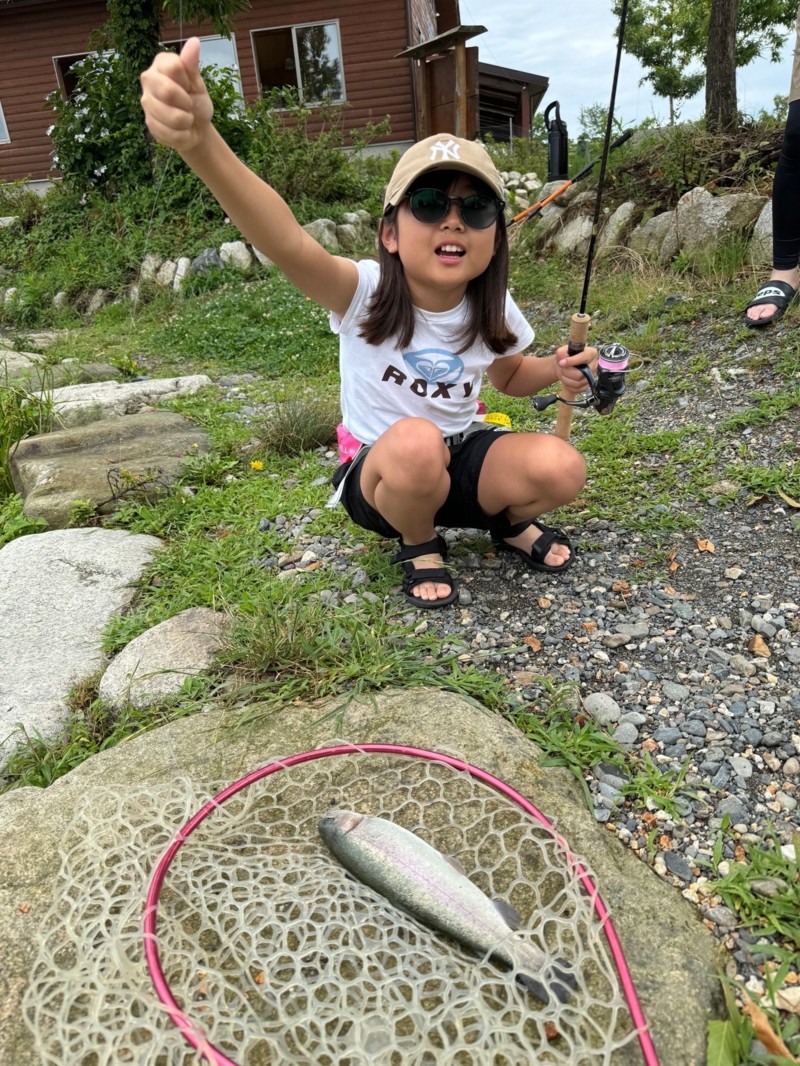 トラウト初心者、釣り初心者のスタッフと子供さんもいましたので、しっかりレクチャーしてもらいスタート🎣