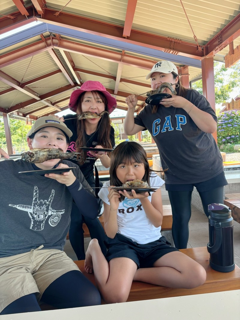釣れたマスはBBQコーナーで串刺しにして塩焼き💕
