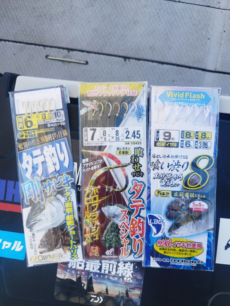 針のサイズや形1つで掛かる時と掛からない時があるので仕掛けは沢山必要です。今日も針の形状やハリスを少し細くしたらイワシの掛かりは良かったです。
