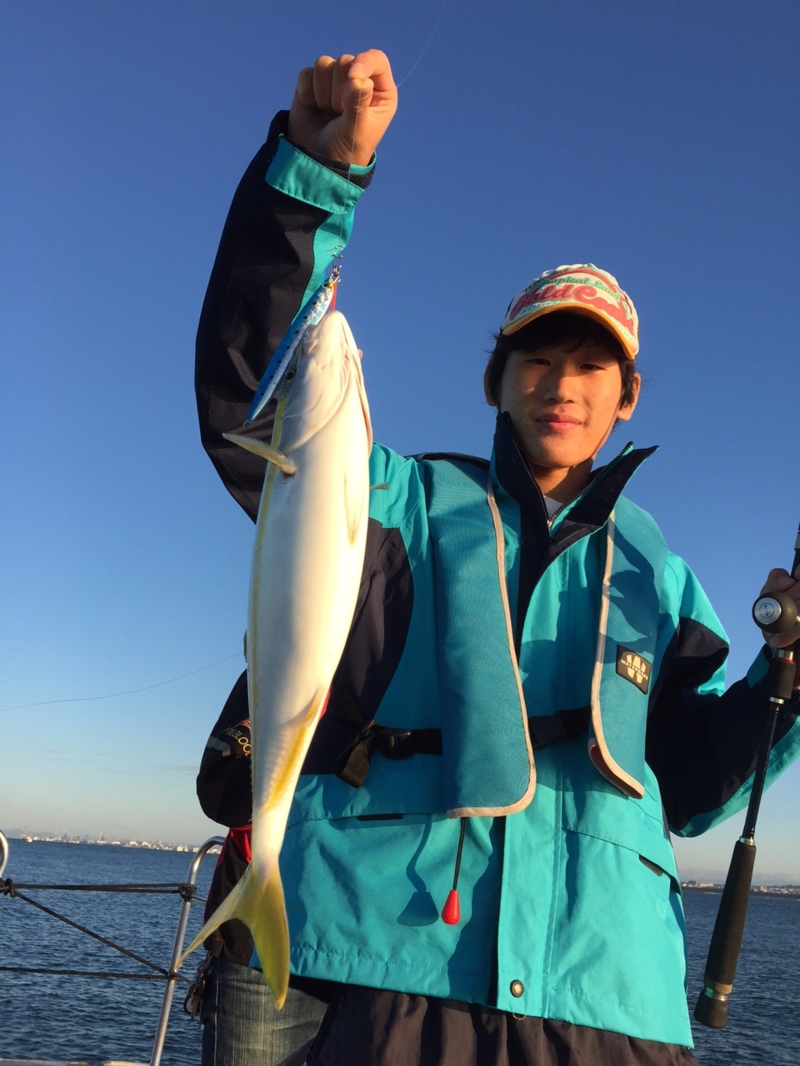 シャウトステイ130gシルバーに一匹目の大ハマチGET!