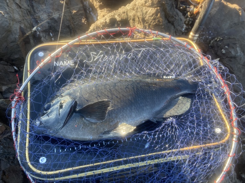海は超ゆっくりですが沖に出ていく潮のようで風も弱く雰囲気は良い感じ。足元周りはサシエがそのまま帰ってくるので30mほど沖の多少水面に変化の感じられる辺りから狙っていきサシエは残りますが足元周りよりは潮があるようでそのまま沖を狙っていると道糸に少し違和感を感じ合わせるとなかなかの手応え!グレらしい引きとなかなかの重量感!1匹目なので丁寧に寄せて来ると思った以上にサイズがあり無理せず慎重に寄せて無事にタモに収まり今年初の魚をGET!初釣りボウズはこれで回避♪
