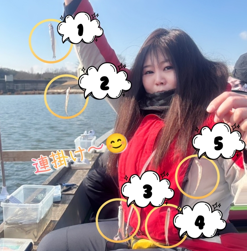 釣り始めると仕掛けを投入してすぐアタリが出るくらいワカサギの魚影が濃く、次々と周りでも釣れてました。