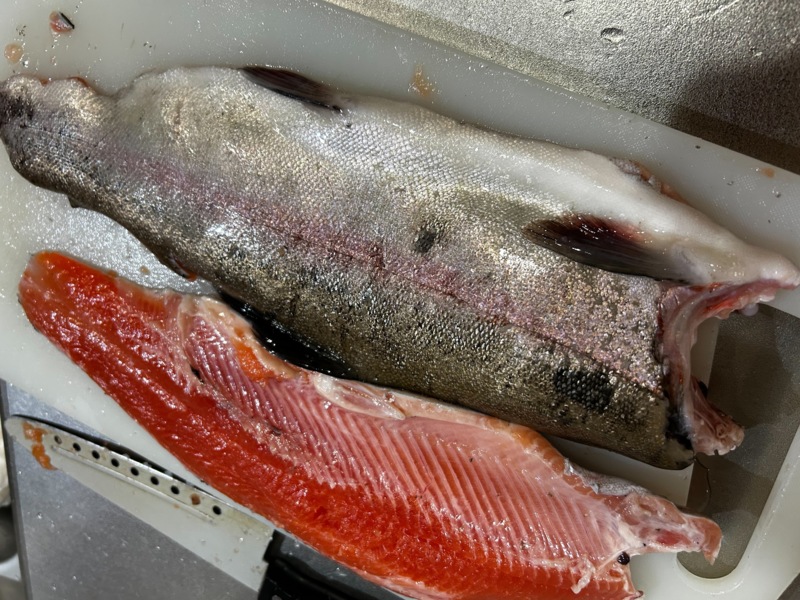 大きなニジマスは赤身で脂が乗っており、刺身でいただきましたが最高でした🤤