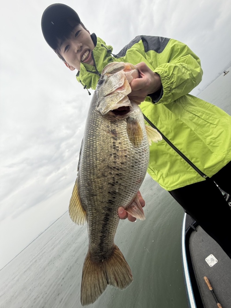 後半は雨も強く厳しかったですが、ベイトが回遊してきたタイミングで、バスのスイッチが入り、喰わせることができました!