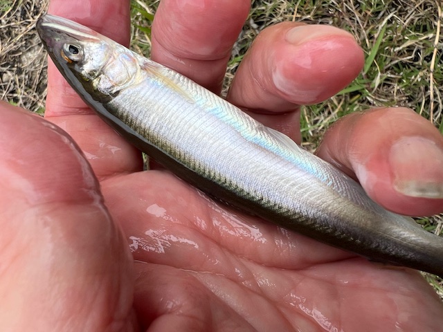 真っ白な10センチ前後の小鮎が釣れましたが残念。次回に期待します。