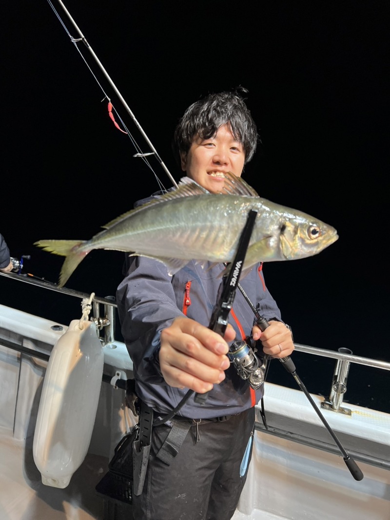 開始から30〜40分ほど経った頃、スタッフの一人が30cmを超える良型のアジをヒット‼️