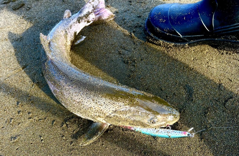 初日と2日目の午前中は雨とかなりの逆風だったので、風裏のポイントでやったのですが、イトウの姿はなく……