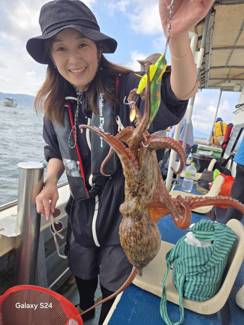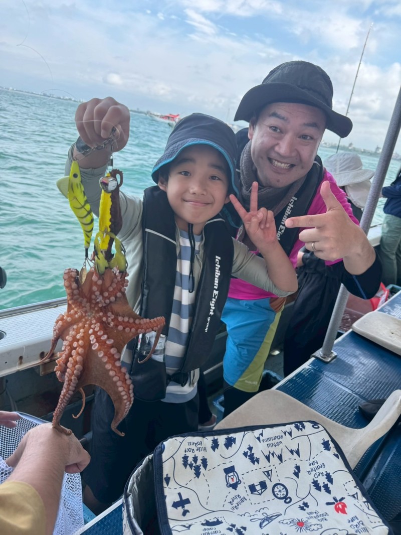 最初は底取りの感覚が分からず、糸が絡んだり根掛かりして糸が切れてしまったりもありましたが、感覚をマスターした方から順番にタコ独特の重さを楽しんで頂きました!