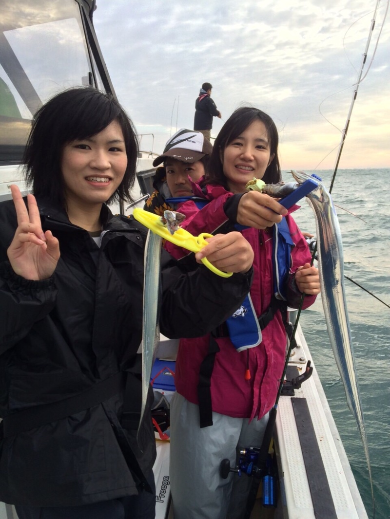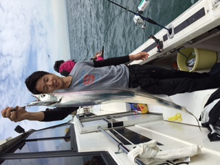 10月5日、西宮市の釣人家さんにお世話になり、大阪湾で太刀魚テンヤに行ってきました。すると、初めの2,3投目ですぐにヒットし、長谷川、竹田さんのダブルヒットで幸先の良いスタートを切りました。しかしこの後なかなかあたりは来ず、他の乗客の方もあまり釣れていない様子でした。そんな中、中村さんの竿にヒットが!みごとな太刀魚を釣り上げました!その後に竹田さんの竿にもヒットがあり、指4本半の太さの太刀魚を釣り上げました。時間も終わりに近づいていき、もう1匹くらい釣り上げたいなと思っていたその時、長谷川の竿にヒットが来ました。最後の最後にやった!と思っていたら、竿が一気に軽くなり、ばれてしまいました。それと同時に隣にいた安藤さんの竿が一気に曲がり、長谷川の竿にかかっていた太刀魚が隣へ移ったという事件?が発生しました。最後の1匹は、長谷川と安藤さんが協力してあげたという事で…いいですよね?