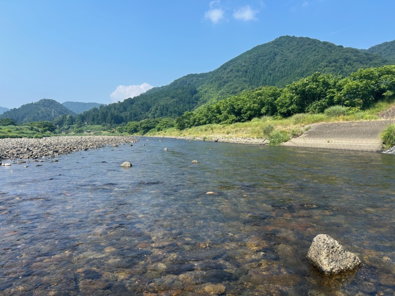 深みのトロ瀬ポイントには地元の方が入っており、安定して釣っておりアユが溜まるポイントは釣れないながらもあるようでした。