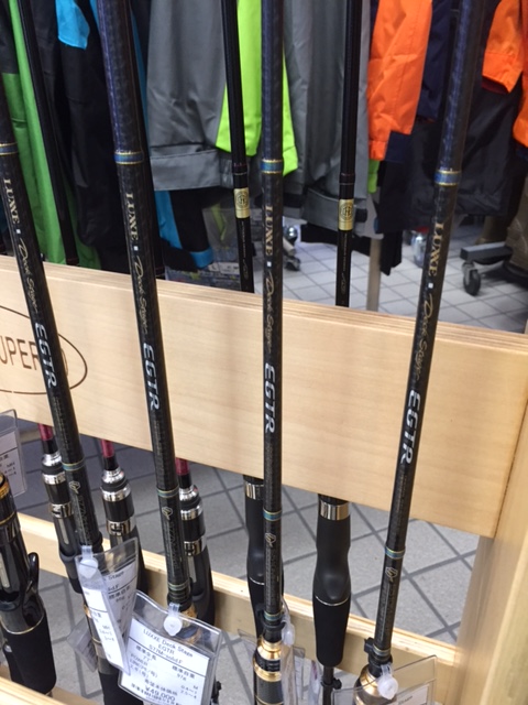がまかつのワインドマスター、EGSPなどのルアーロッド展示会を開催しました。