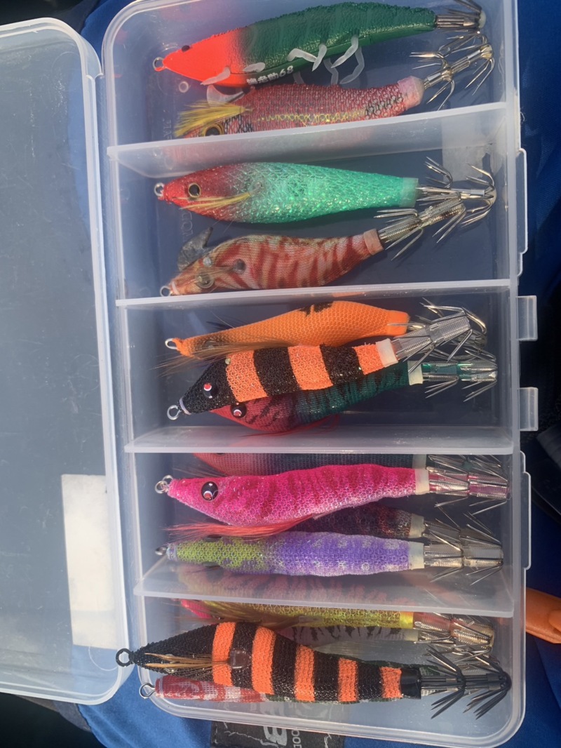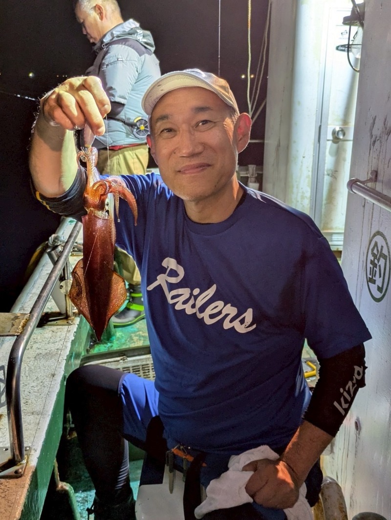 この度は美味しいイカを求めて、兵庫県浜坂『笑福丸』へ行って来ました。駐車場で受付と乗船名簿を記入して、船に乗り込みます夕方5時の出船でポイントまで約20分、この近さがとても楽です、仕掛けをセットして船頭からの指示で25号のオモリで統一します、私はシンプルに枝1本ショートタイプで、お気に入りのヨコドリスッテ(しましまBKオレンジ)をセット、スタートしますが右舷も左舷もヒットの声が聞こえません、18時過ぎたころに待望のヒット、その後が続きません、日が暮れて点灯後ポツポツ釣れだしラッシュの時間もありましたが、イカが底や中層とバラついていて、なかなかテンポよく釣れません、イカのあたりも小さく、即合わせではかからない事に気づき、合わせを遅らせると乗るパターンで数を伸ばしていきました、結局34杯取れましたが、もう少し工夫をしたらもう少しとれたのかなと次回のリベンジを誓って納竿となりました。おすすめドロッパーはイージースリムとヨコドリスッテ、必ず持って行って下さいね。