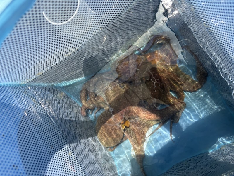 その後は釣れない時間が続き、ポイント移動していくとポツリポツリとあちこちで釣れはじめ、船中ではキロアップや最大3キロを超えるタコも上がっていました。