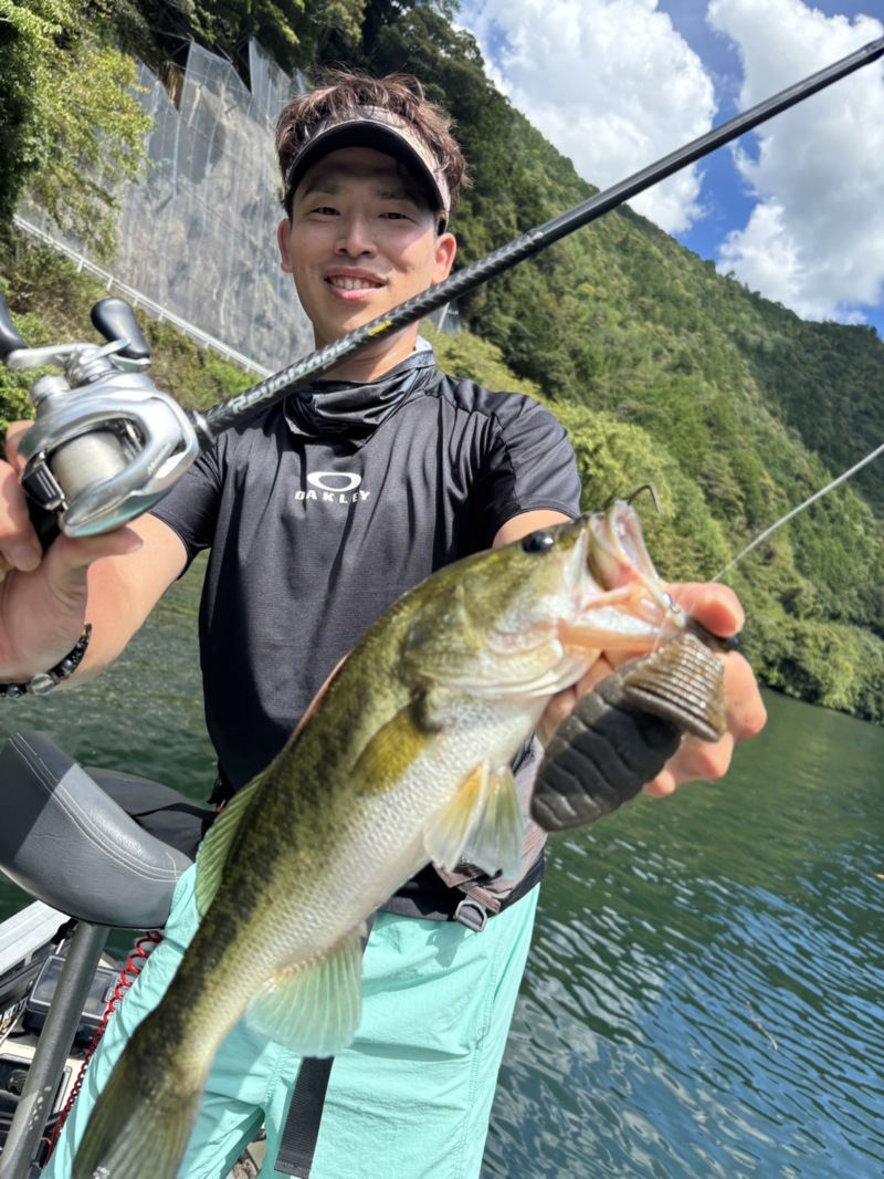 酷暑で濁りがきつくバスを探すのに全員苦戦しましたがなんとか釣れました!