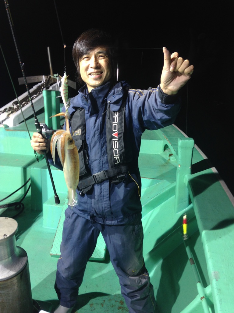 仕掛けの考え方、誘い方のパターン、スッテのカラーに対しての考え方等、本当に色々と教わりました。しかし、あいにくケンサキイカはいらっしゃらないようで、大西さんでも4匹。自分は2匹。他のスタッフは秘密の釣果で終了しました。それでもスルメイカが少し遊んでくれたのでみんな誘い方とアタリの出方についてはつかめましたので来期のメタルスッテシーズンには大西名人直伝テクニックで頑張りたいと思います!