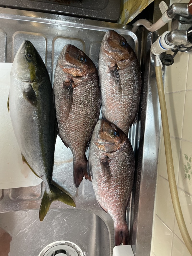 - 4人で大ブリ1匹・カンパチ1匹・ハマチ1匹