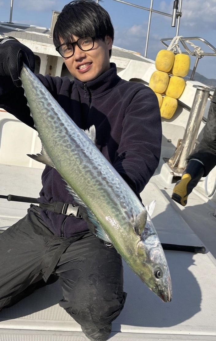あがってきたのは良型のサワラ!