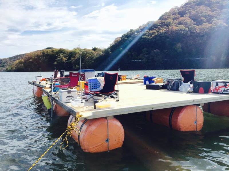 ボートで筏に渡り、8時頃からスタート。朝イチが入れ掛かりタイムでした☆