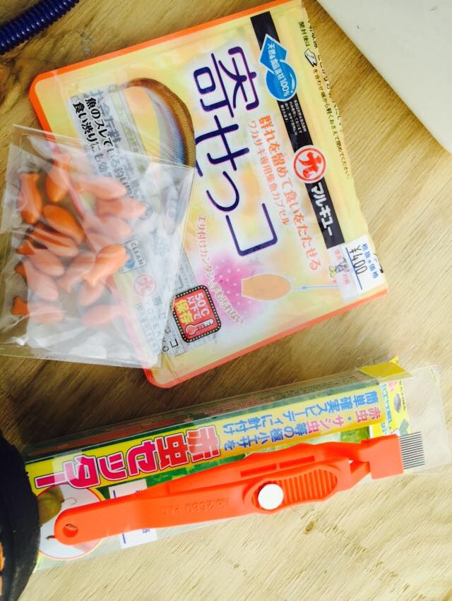 マルキュー新製品の「寄せっこ」も使ってみました。付けたての集魚カプセルの下の針に魚がかかることが多かったのでオススメですよ!
