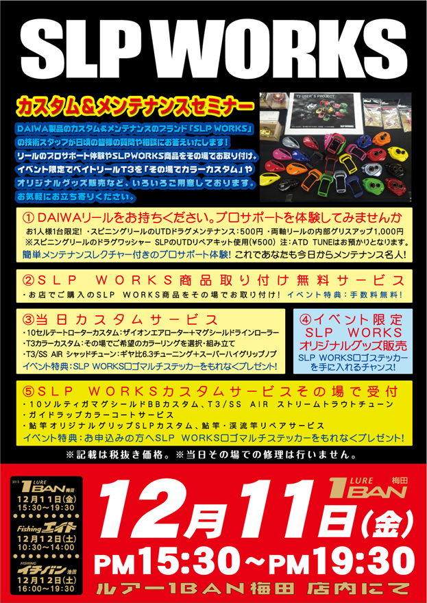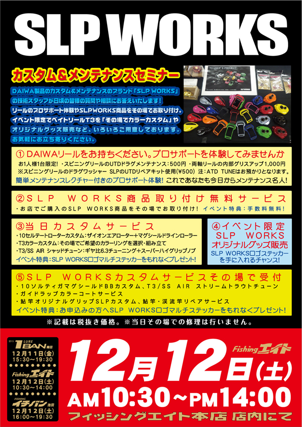 SLP WORKS カスタム&メンテナンスセミナー | つり具豊富フィッシングイチバン・エイト大阪・京都の大型釣具店