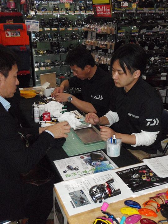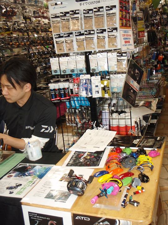 SLP技術スタッフ3名によるのベイトリール軽度のメンテナンスや当日購入パーツの無料取り付けサービスが好評でした。T3のカラーカスタムやソルティガのマグシールドBB交換、バス~ジギングまで様々なリールに対応させていただきました。 12日は10:30~14:00エイト本店・16:00~19:30池田フィッシングイチバンで開催します。
