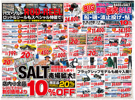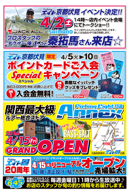 フィッシングエイト京都伏見売場拡大セール | つり具豊富フィッシングイチバン・エイト大阪・京都の大型釣具店