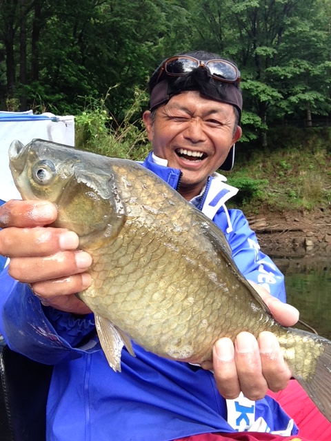 上がってくるヘラブナも、黒光り?した、いかにも銀山湖らしい魚体。